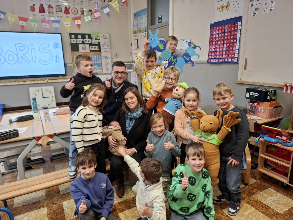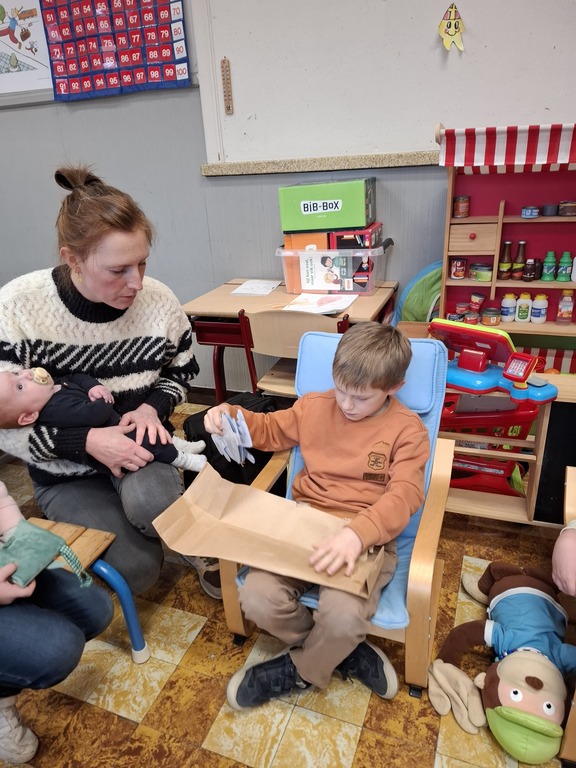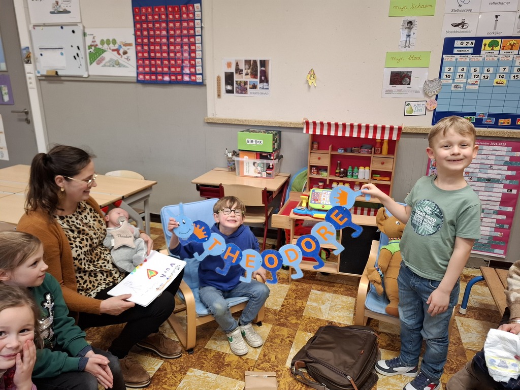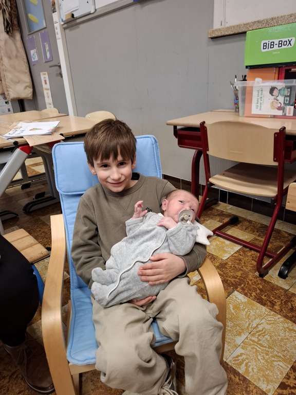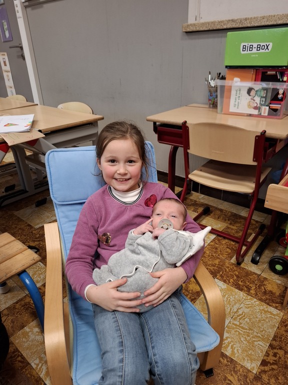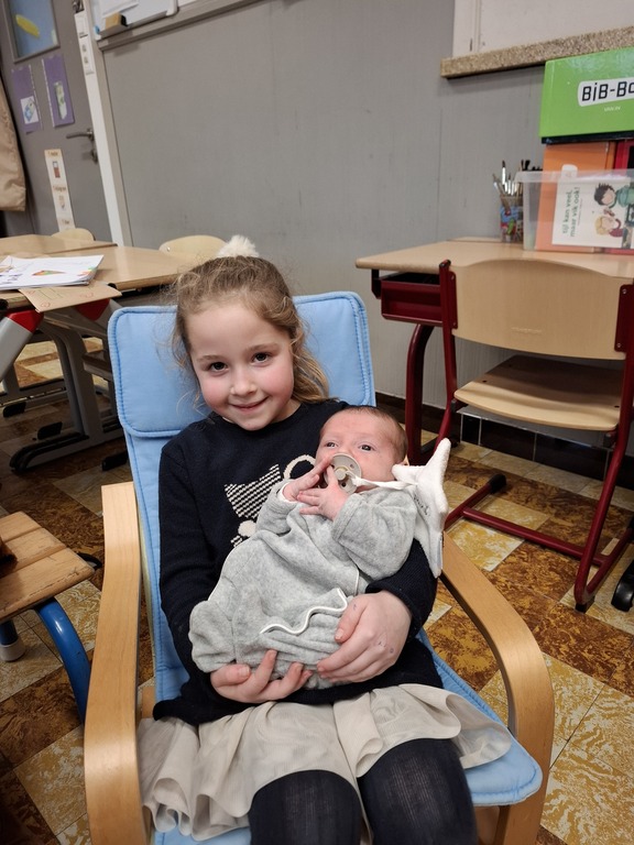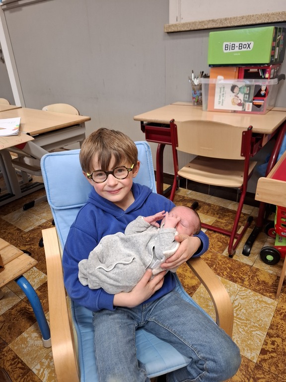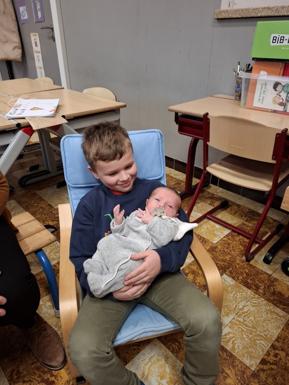 Ook Honoré werd grote broer. Mama Valérie en broertje Théodore kwamen langs in de klas.